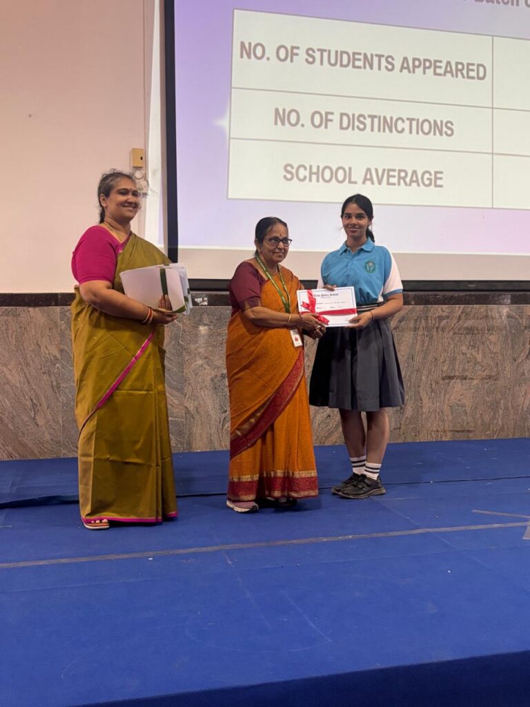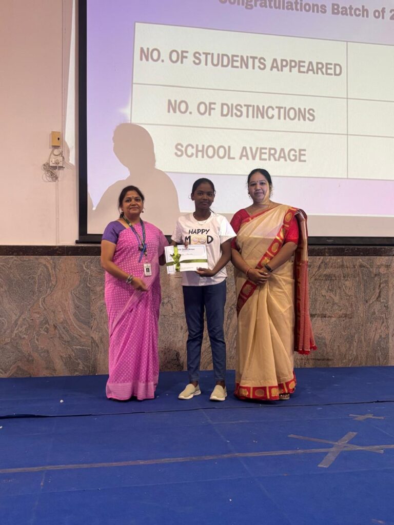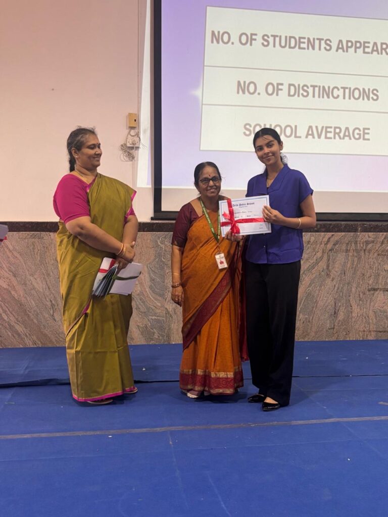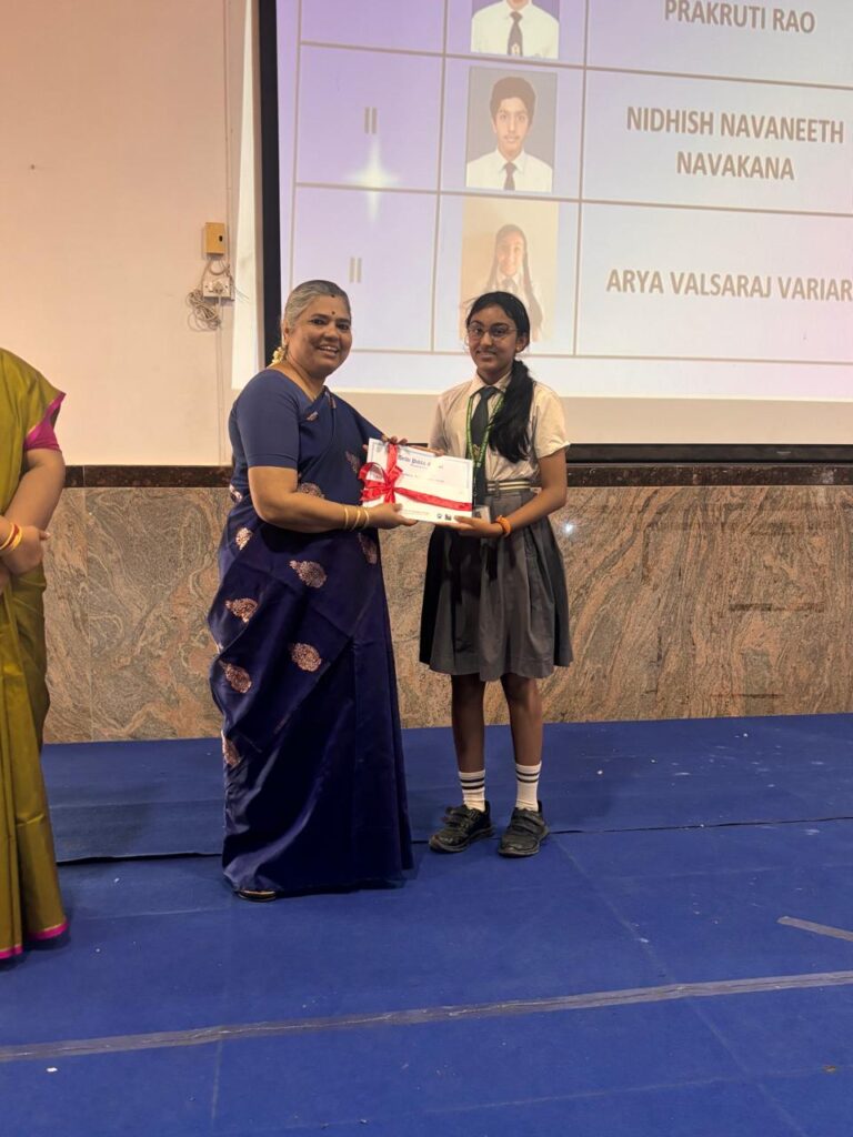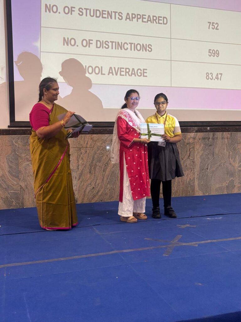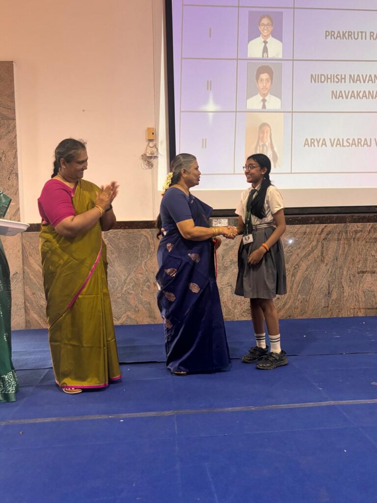 The Headmistress, Mrs. Abarna Seetharaman, eloquently addressed the gathering with an inspiring message, emphasizing the importance of discipline, consistent effort, and lifelong learning. She congratulated the students on their remarkable accomplishments and encouraged them to continue striving for excellence in all spheres of life.