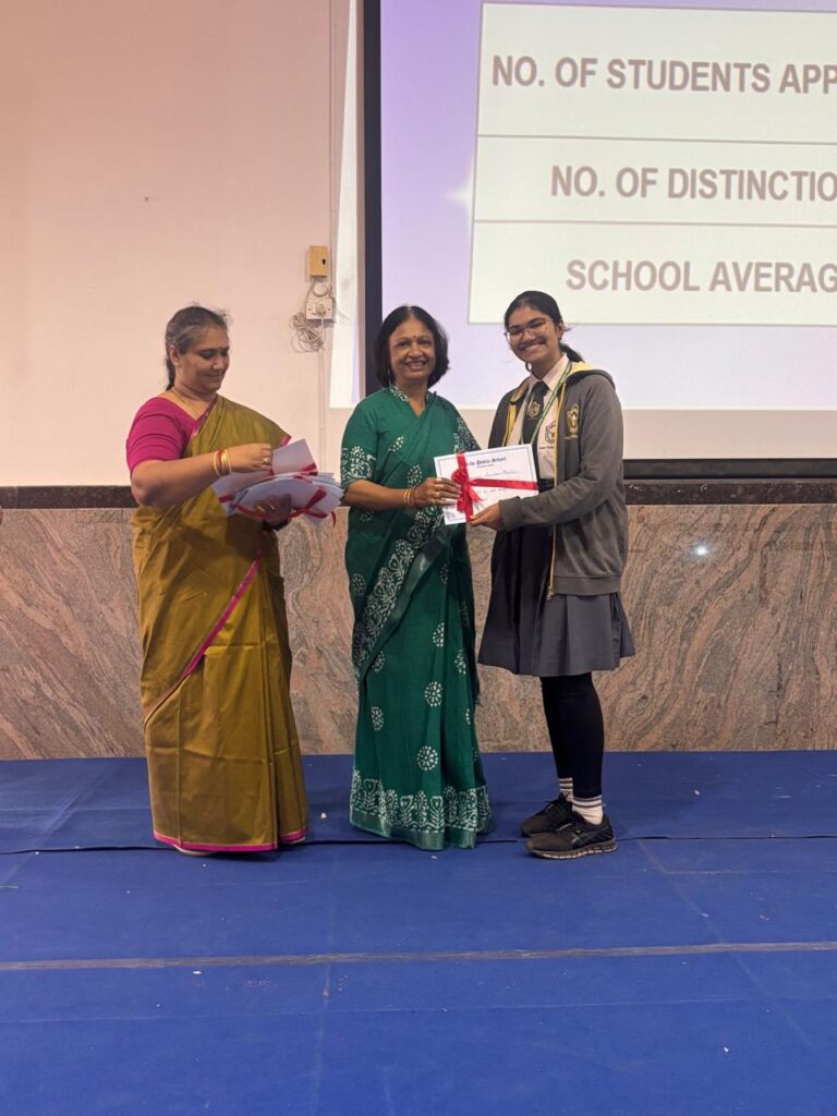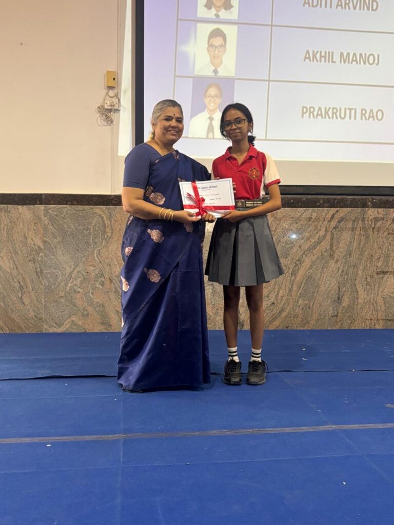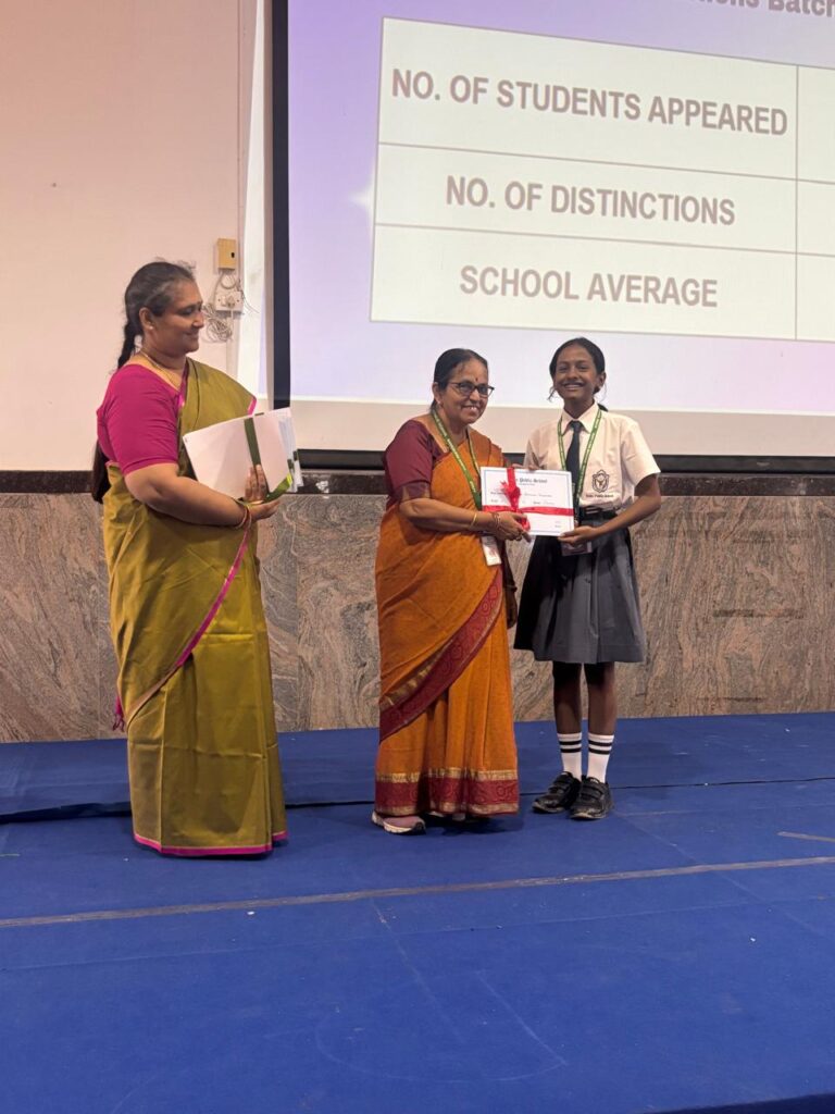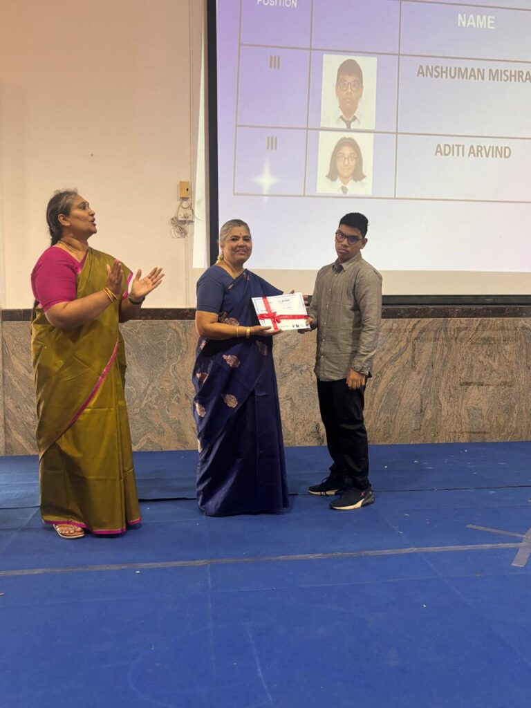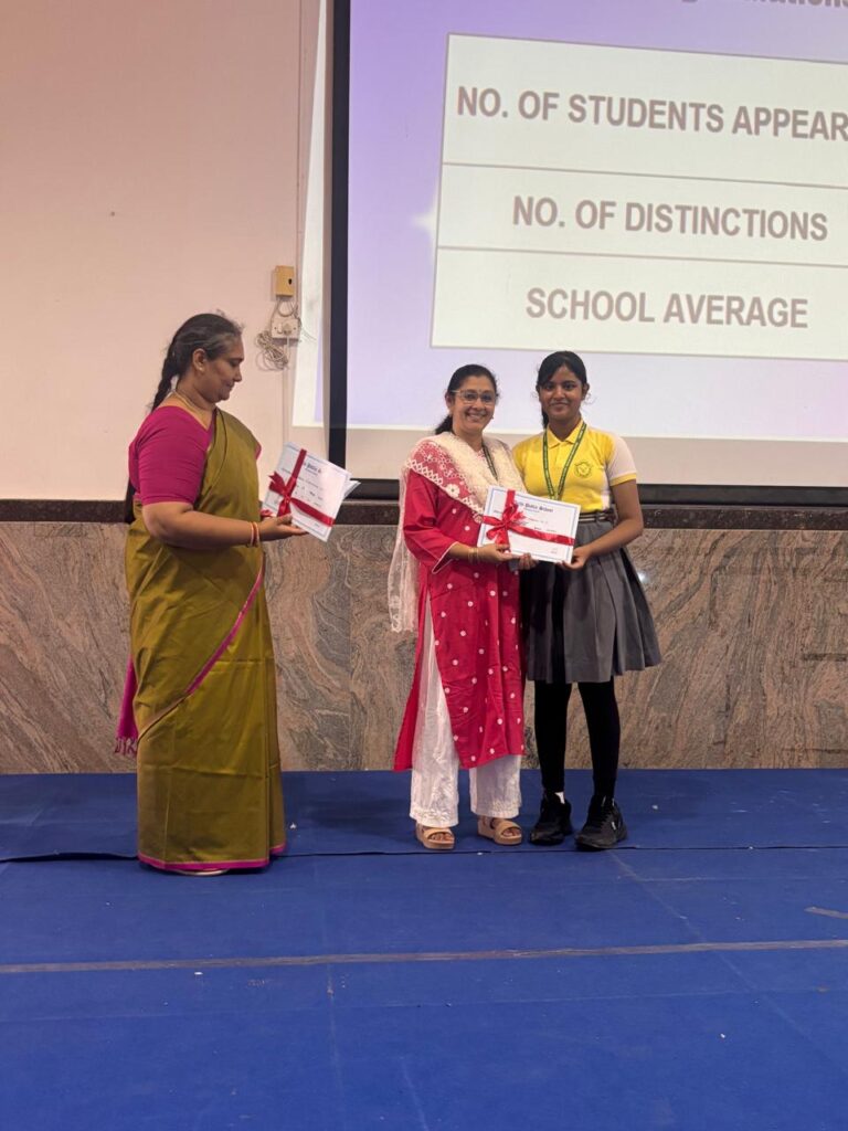 The Headmistress, Mrs. Abarna Seetharaman, eloquently addressed the gathering with an inspiring message, emphasizing the importance of discipline, consistent effort, and lifelong learning. She congratulated the students on their remarkable accomplishments and encouraged them to continue striving for excellence in all spheres of life.