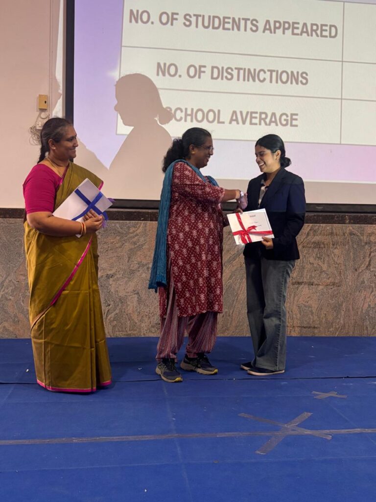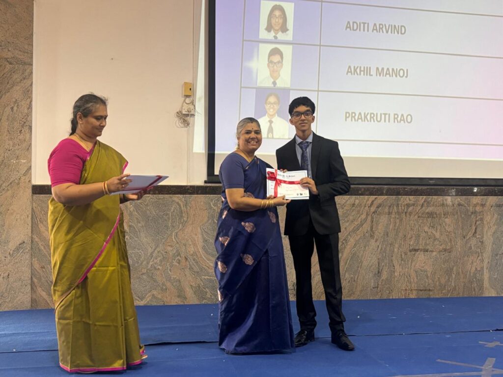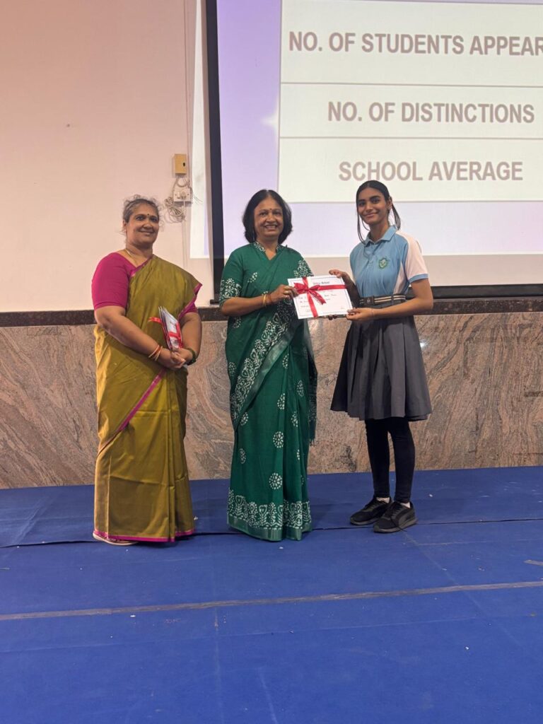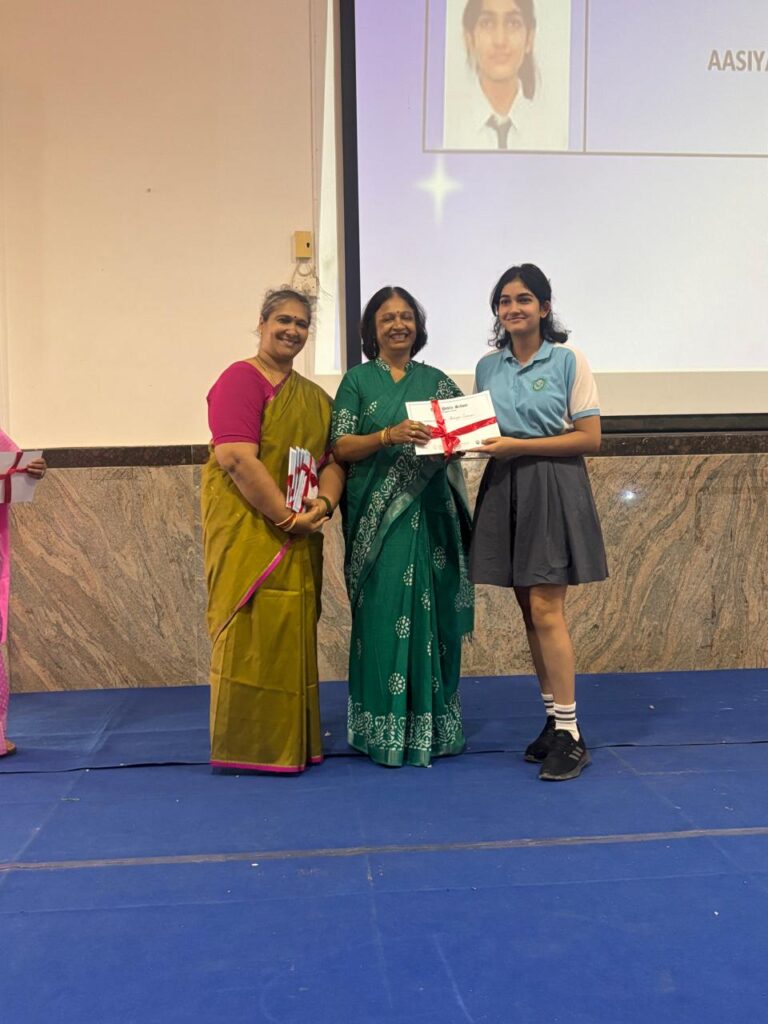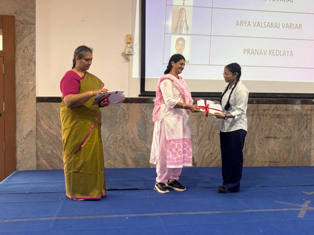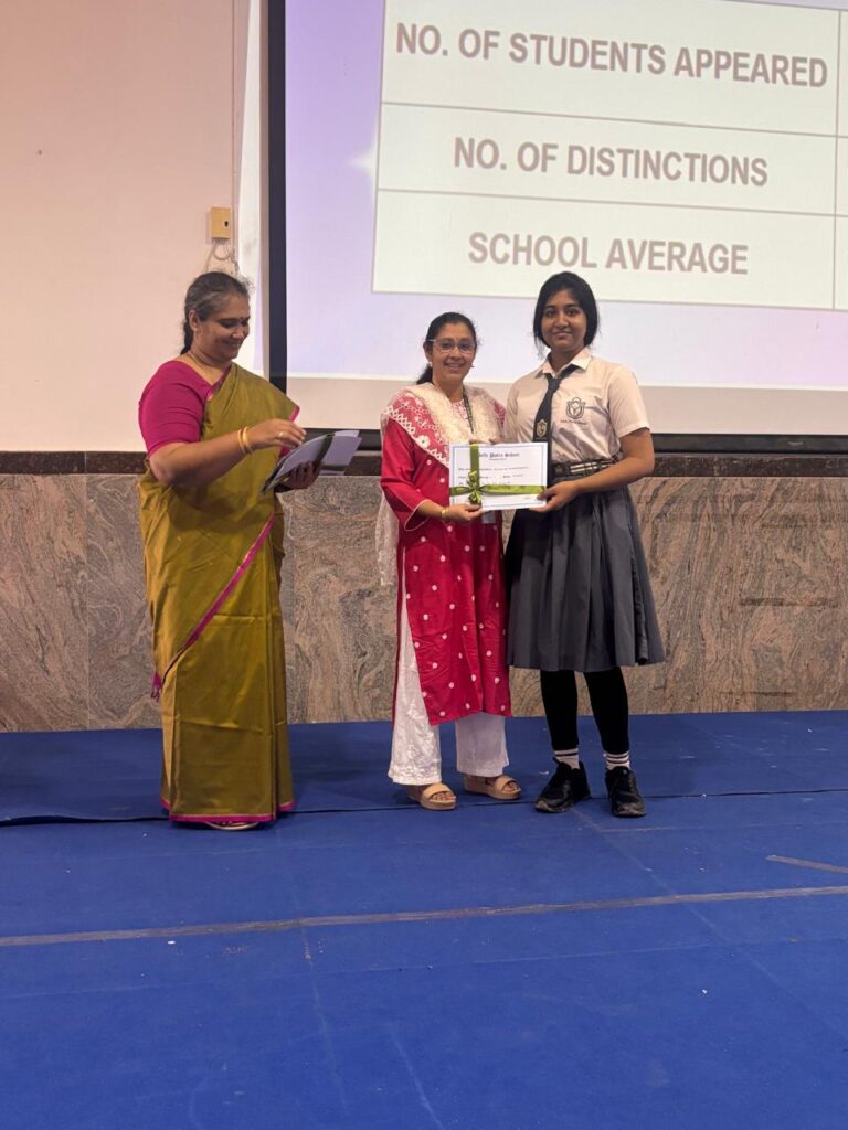 The Headmistress, Mrs. Abarna Seetharaman, eloquently addressed the gathering with an inspiring message, emphasizing the importance of discipline, consistent effort, and lifelong learning. She congratulated the students on their remarkable accomplishments and encouraged them to continue striving for excellence in all spheres of life.